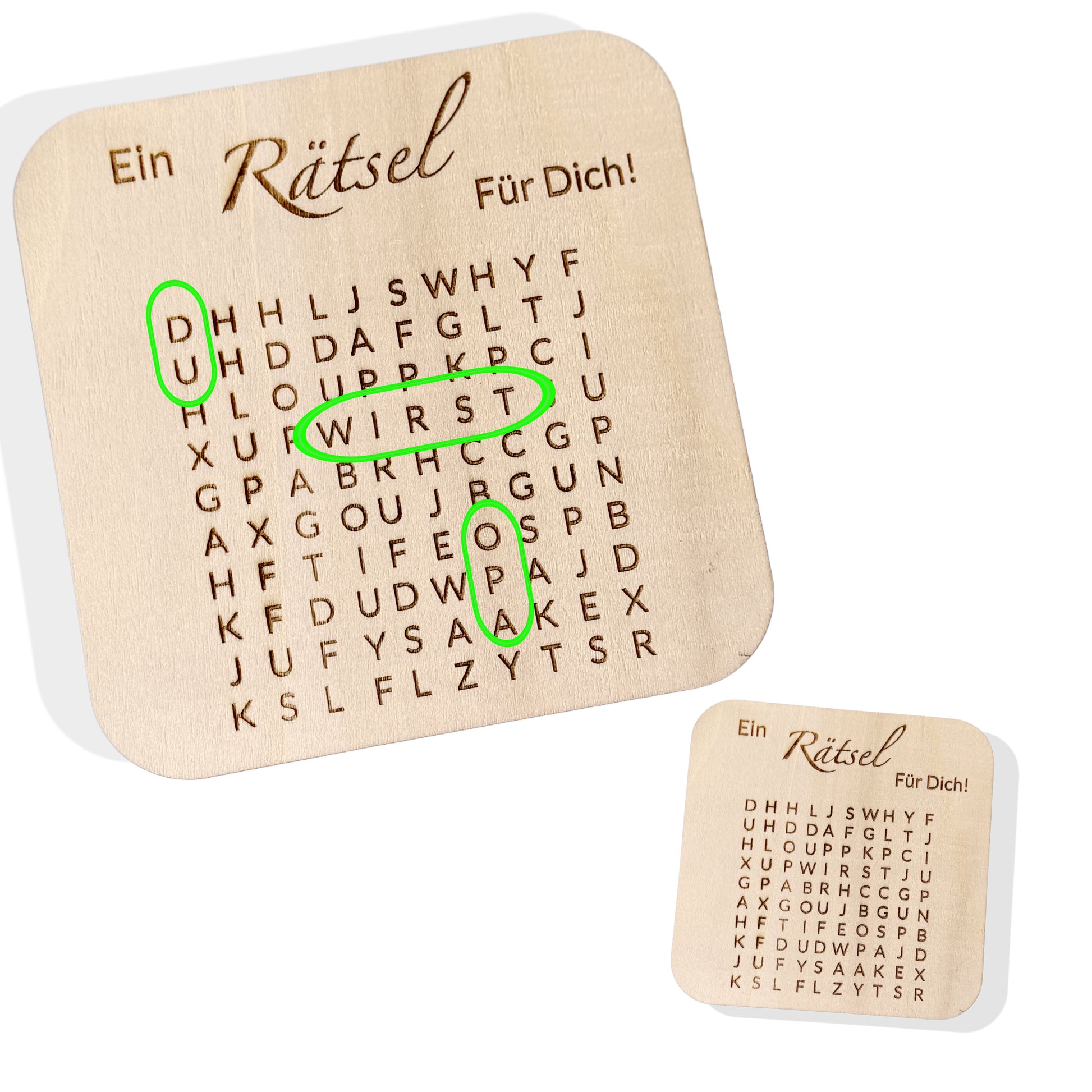 - Individuell gravierbar – z. B. mit Namen oder Wunschtext im Lösungsfeld